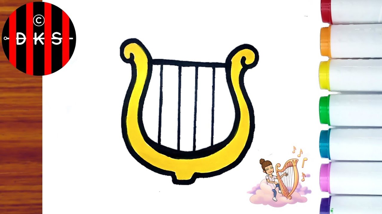 How To Draw Harp Music Instrumental Easy Drawing Dks Cartoon Youtube